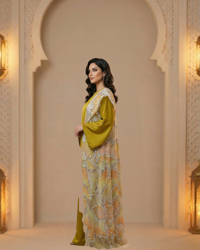 ✔ Style: Elegant, modern, two-piece evening abaya set